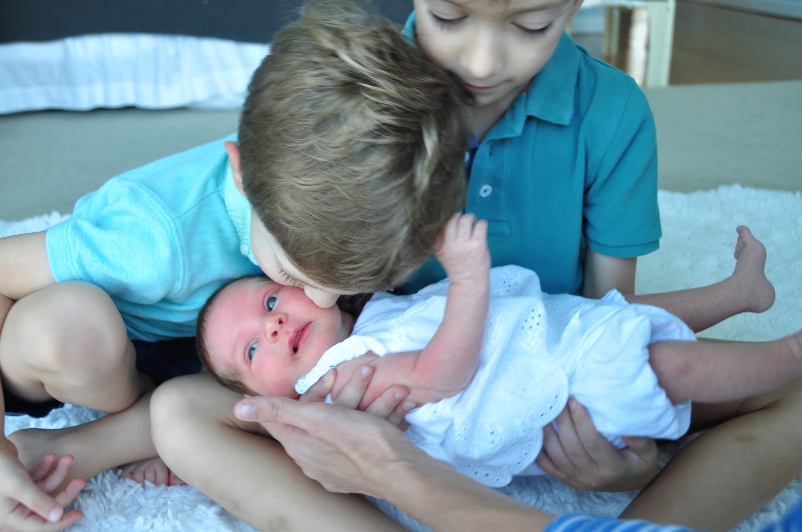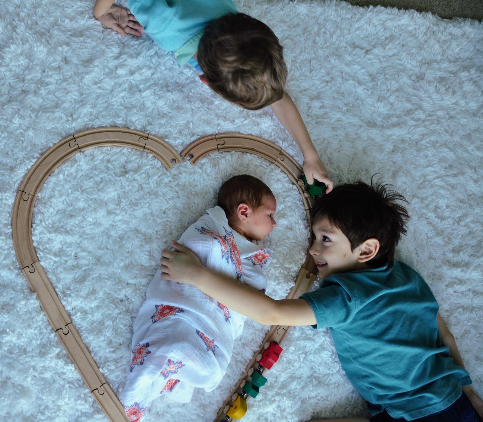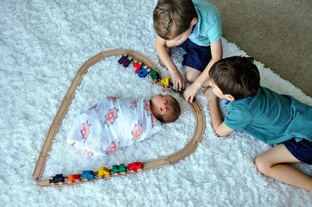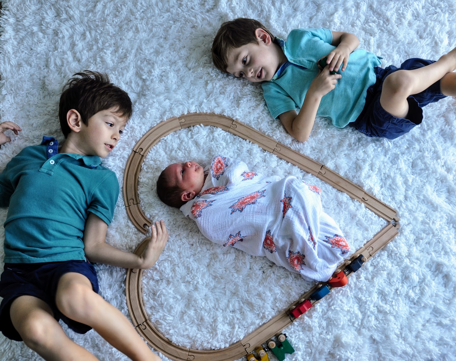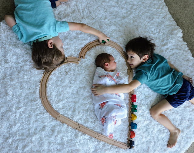 And that is where Kate and her magic comes on. She came in for a whirlwind two day visit this past weekend and in that time managed to motivate me to collect all three of these cuties and take some pictures. I would have probably have given up a few minutes in if Kate wasn’t there with her calming voice and tricks to get the boys to look at the camera at the same time. But boy am I glad Kate convinced me to take these pictures because I love having pictures of all three of my little ones together.