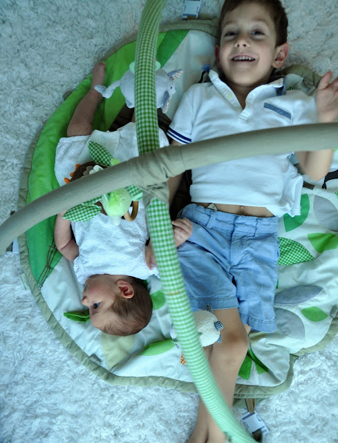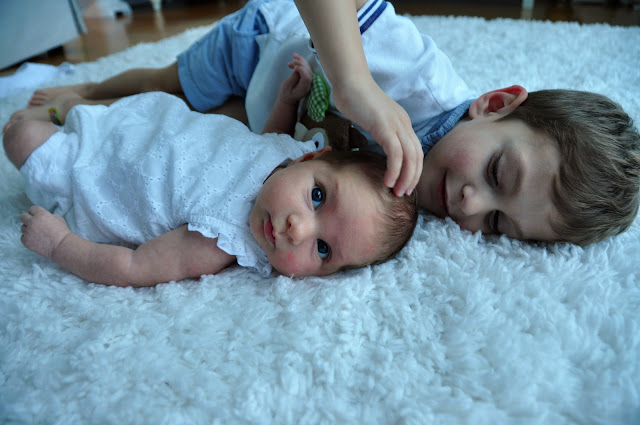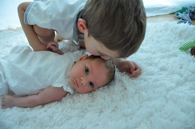 You’ve started clutching my finger with your little hand while you’re nursing and it makes my heart swell every time. You’re lifting your head up and love to look around at everything. Tummy time is a little crowded cause your brothers like to help out but you don’t mind. I had to put away a few bits of clothes this week and it just about broke my heart. You’re smiling so much when we talk or sing to you.