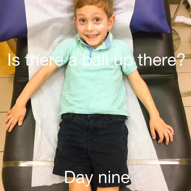Day nine- a trip to the doctor and ENT to make sure Malcolm didn’t have a ball up his nose (apparently allergies can make a three year old feel like there is a ball up there nose….)