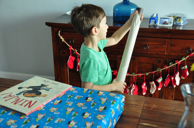 First up, a rain stick that Adam has wanted for months now and a ninja book from us.