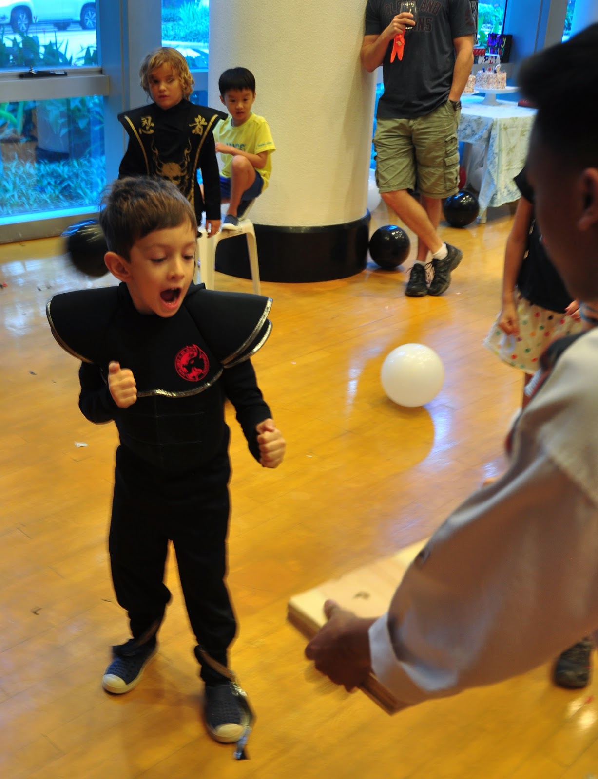 For Adam’s 6th birthday he decided about 10 months ago he wanted a ninja party. Not a teenage mutant ninja party he would tell me, a black ninja party. What is amazing is this was before the boys discovered Ninjago on Hulu and before Adam started Tae Kwon Do this summer. So it all came perfectly together. We threw in some black ninja, some Tae Kwon Do and some Ninjago and every one was happy. Adam is definitely my child. He loves to plan a party and we would talk about every detail over and over and he helped plan the whole party. Fun fact I have learned this year, the plural of ninja is ninja….