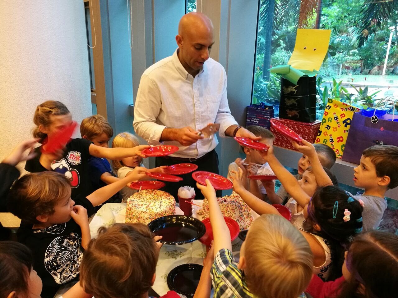 But he got to go to bed at a normal time while I stayed up and assembled 40 gift bags and tied ribbons on 120 balloons. They will inflate balloons (not with helium, for some reason the Philippines has not mastered non dangerous helium for kids balloons and it is rare to find) and attach a plastic stick that inevitable becomes a way for the kids to play swords…..so I always say no plastic sticks and tie ribbon on all the balloons.