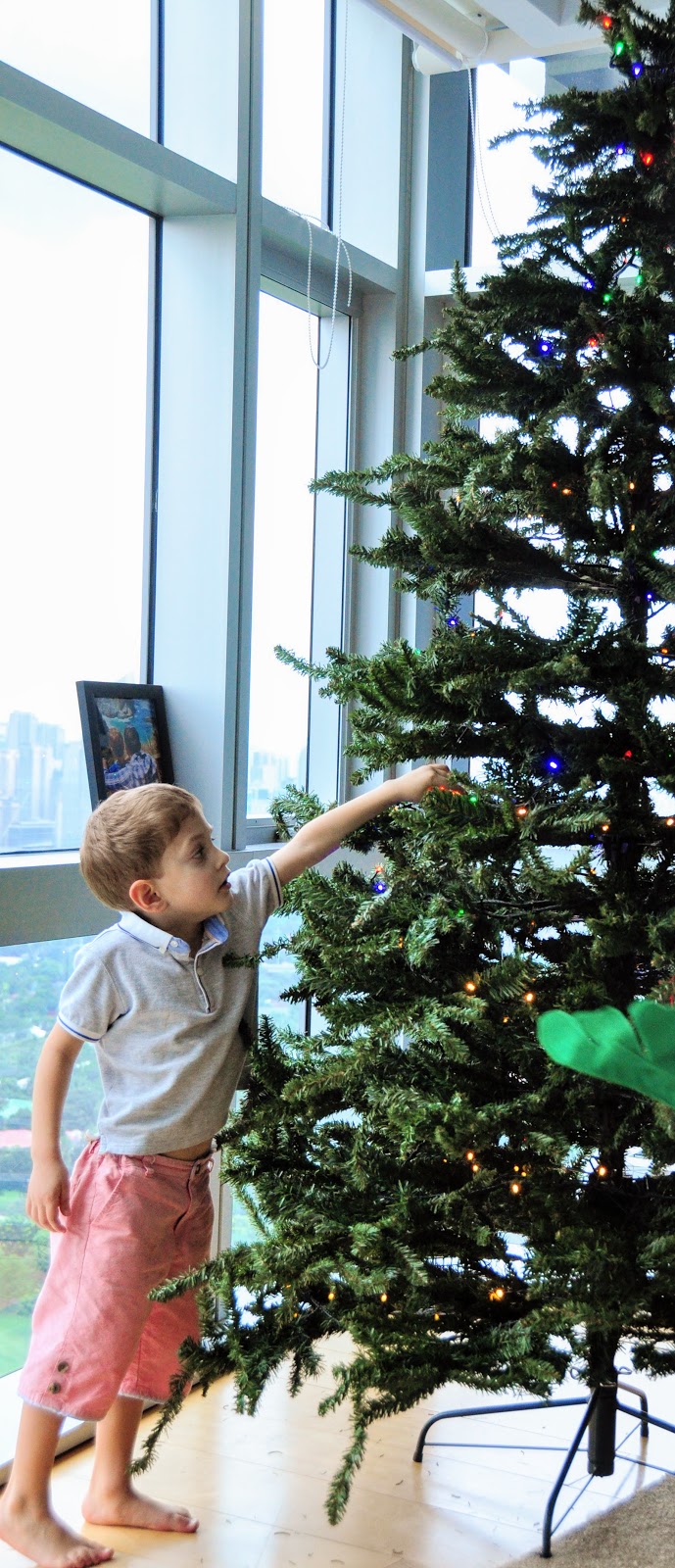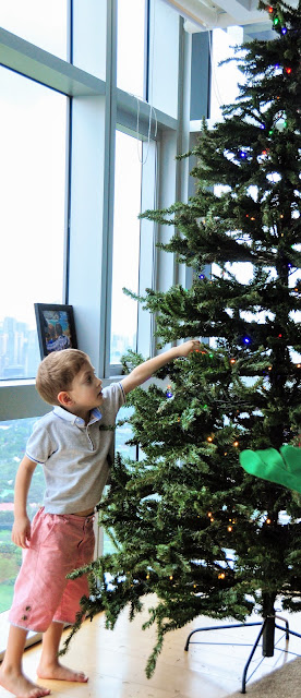 Before we left for our trip we put our Christmas Tree up! We had plans to spend Christmas in New York for the first time in five years we decided to decorate our tree early. We already had a fake tree which was great because we put it up and left it up the whole six weeks we are away! Then when we get home in January, we’ll have a little bit of Christmas left. And Christmas tree day is my favorite day so I wanted to make sure the boys had the chance to decorate the tree and Miral got to have her first Christmas tree day.