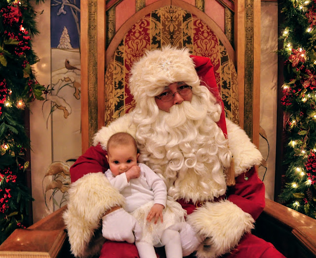 I wanted to get a picture of Miral with Santa and she nailed it. She’s too young to have stranger danger so had no qualms being held by Santa. I was a little nervous she would slide off his big lap but I’m guessing Santa has a lot of practice holding babies.