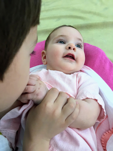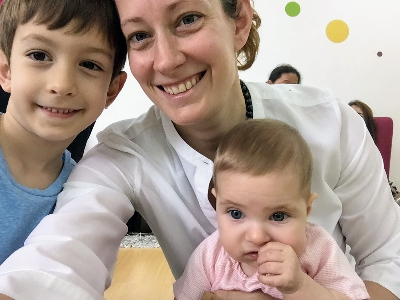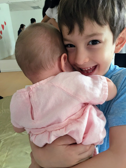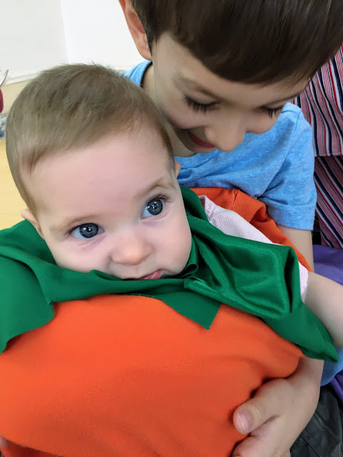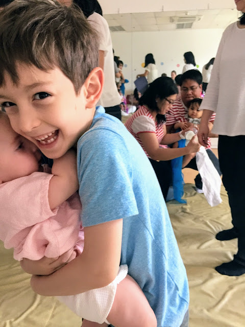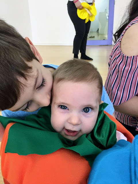 Week 27- I signed Miral up for a music class when I went back to work. I wanted to make sure I had little bit of time with just Miral since things often get hectic. Every Saturday morning I take Miral to music class and the boys go do something fun, an arcade or a kids play area. This plan was working pretty well but then of course things came up and we had to miss a class or two and make one up on Sunday when it’s harder to leave both boys at an arcade. So this week Adam came with me to music class. Malcolm had a playdate with a friend so it worked out.