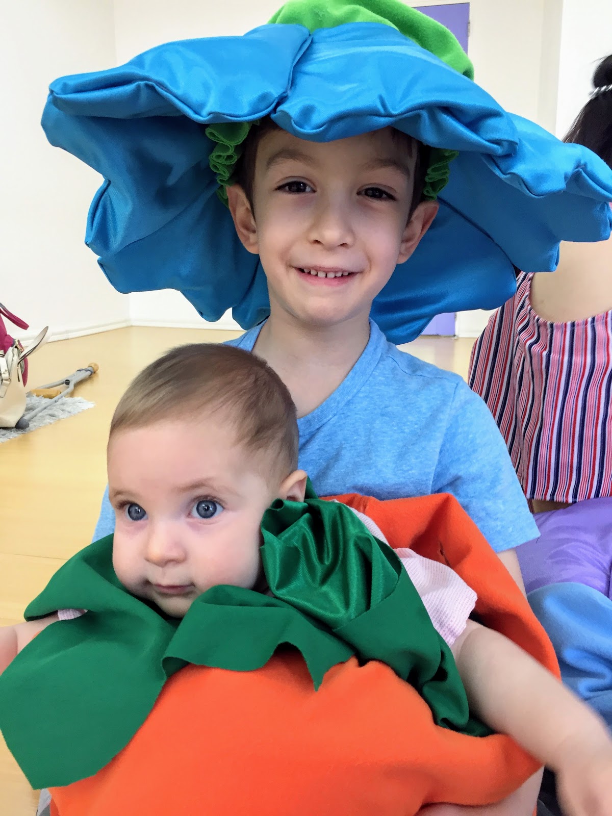 An added surprise was that the teacher on Sunday was Teacher Carol, Malcolm’s Pre-K teacher and Adam’s old Pre-K teacher.!Adam loved being there and wanted to hold Miral and show her everything! Miral LOVES music. The minute you start singing to her, she calms down and watches you. She loves music class. She watches all the babies, listens to all the singing and loves using the rattles. If only I had brought the real camera but it’s too hard to take real photos and also dress Miral up like a flower in a flowerpot 🙂 Luckily she’s still super cute.