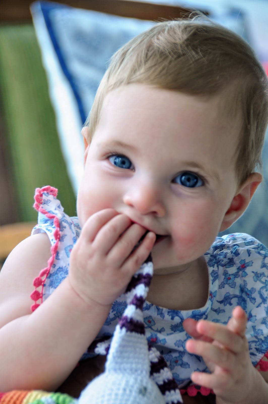 Chewing on her rabbit