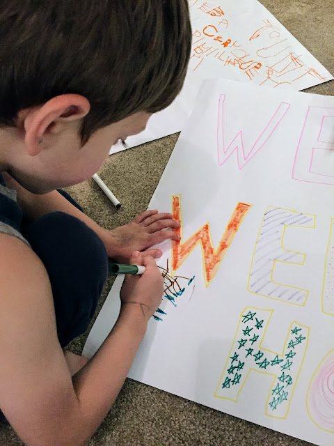 Making signs for Daddy