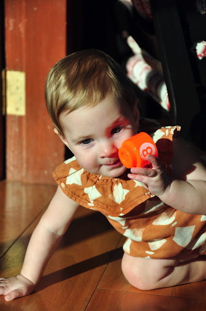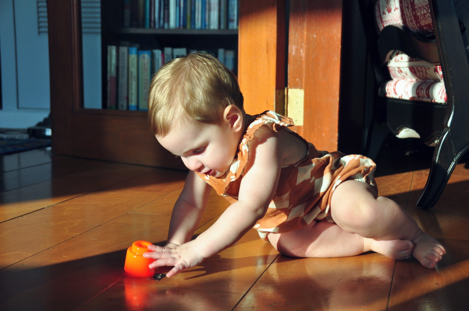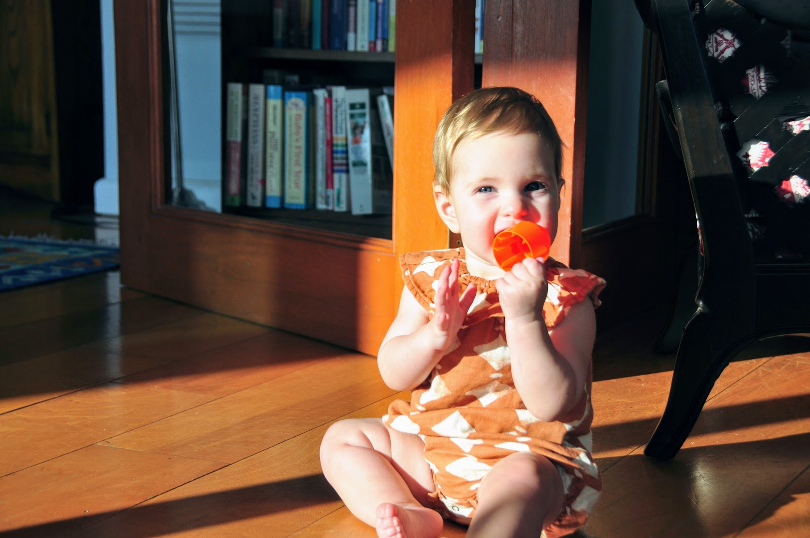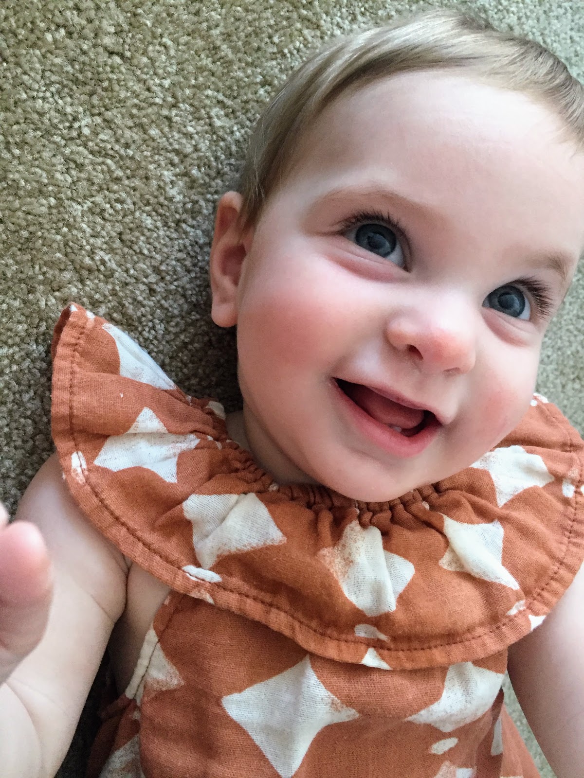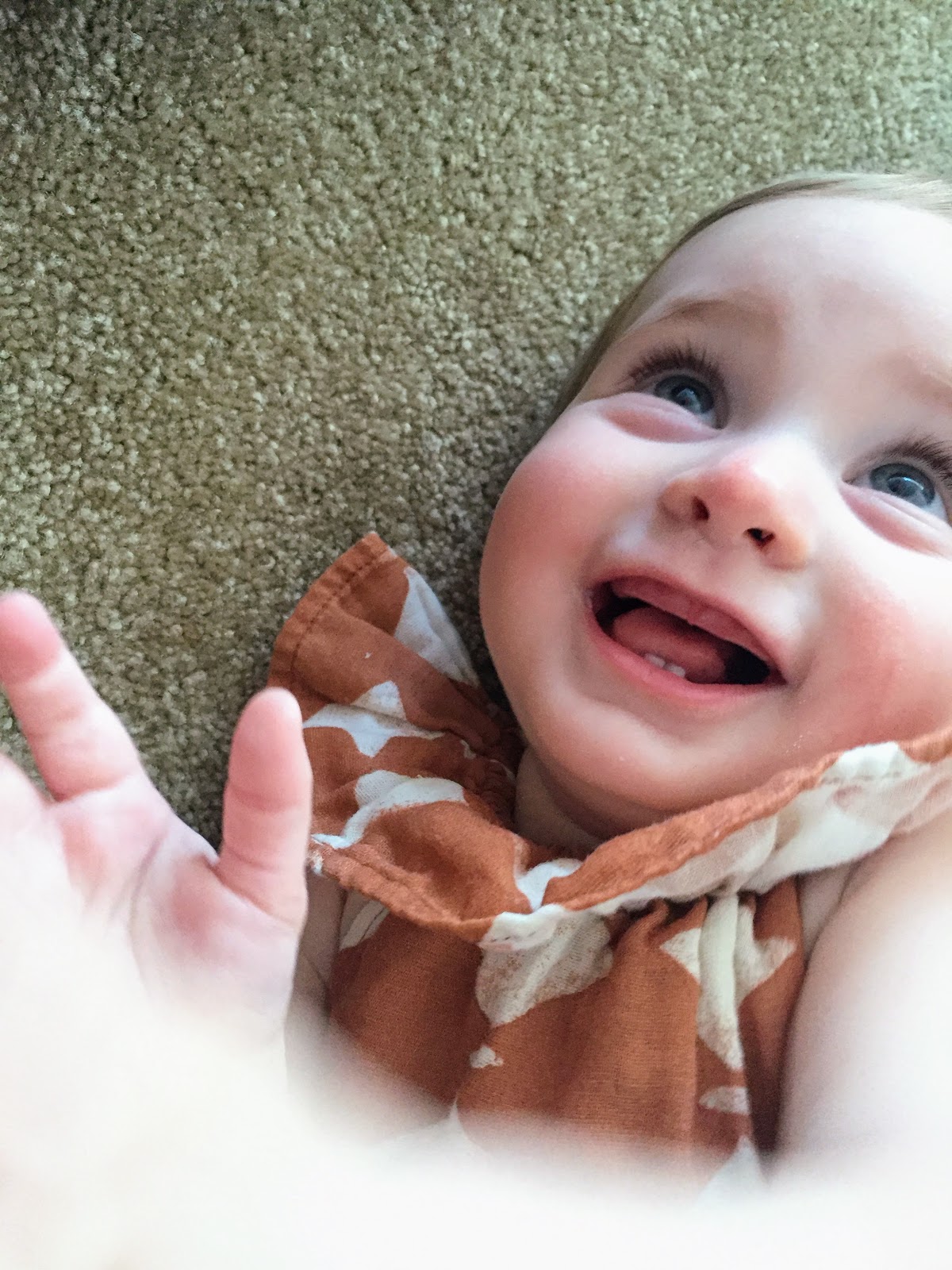 You’re also clapping a bit and you started to pull yourself up. I went in the other day to get you after your nap and you were standing in the crib! I was so surprised π You are growing up so fast, I can’t believe it.Β