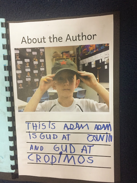 Adam’s class would make their own books. His contribution were always about iphones and minecraft, neither of which he has!