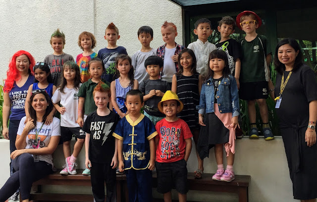 His class decided to have a rock party for the end of the year. Adam was SO excited! He spiked his hair and chose his coolest outfit.