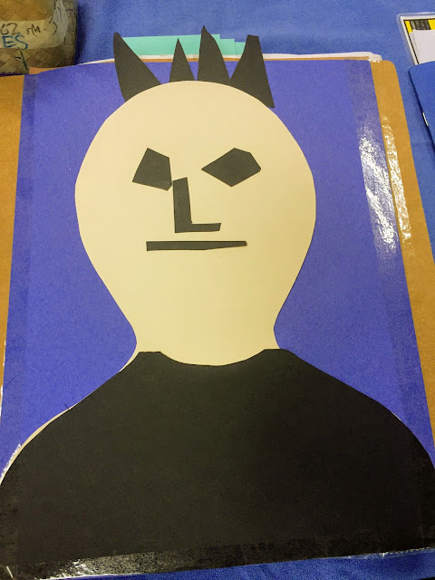 Adam’s self portrait for student led conference with his dream spiky hair.