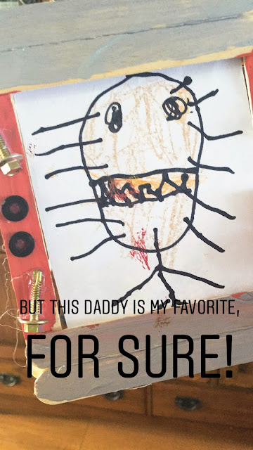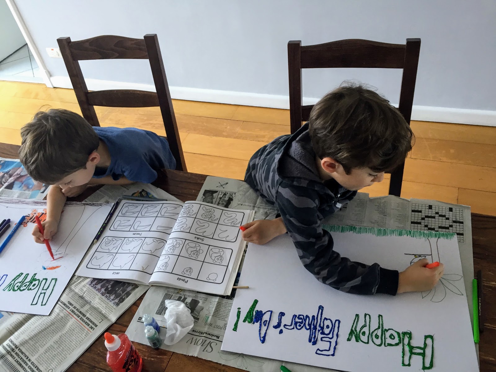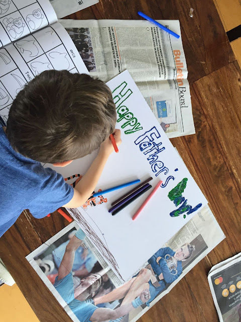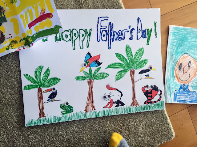 We were all pretty excited for Randy’s second trip home. He arrived the day after Father’s Day so the boys made Randy some cards and posters. The boys loved making these posters and adding in all these animals. The boys had made all sorts of cards for him at school, all portraits of daddy. I loved seeing their interpretation of daddy.