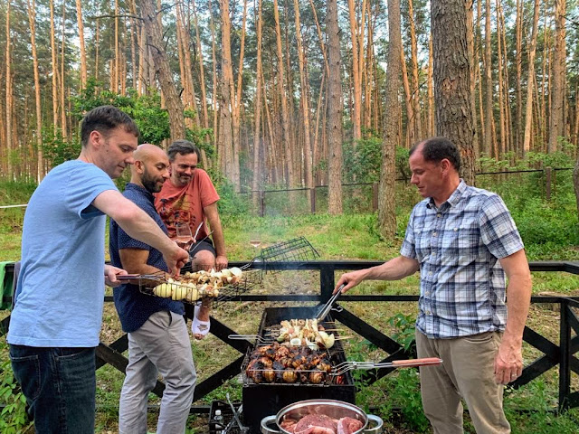 After a few weeks of Embassy barbeques, restrictions were lifted and we could finally spend time outside of Kyiv! We decided to take our barbeque bubble and go away for the weekend. We found a cute place a few hours away called Shishkin. We each rented our own little houses and barbequed outside all weekend. There was even a lake and pool, that were mostly empty, that we got to hung out at! It was the vacation we had all been craving for six months and even though it was just a few hours drive away, after months of limited interaction and no vacations it was like heaven! There were large enclosed grounds that the kids ran around and biked on all weekend, and the adults got to talk and hang out and feel like people again!
