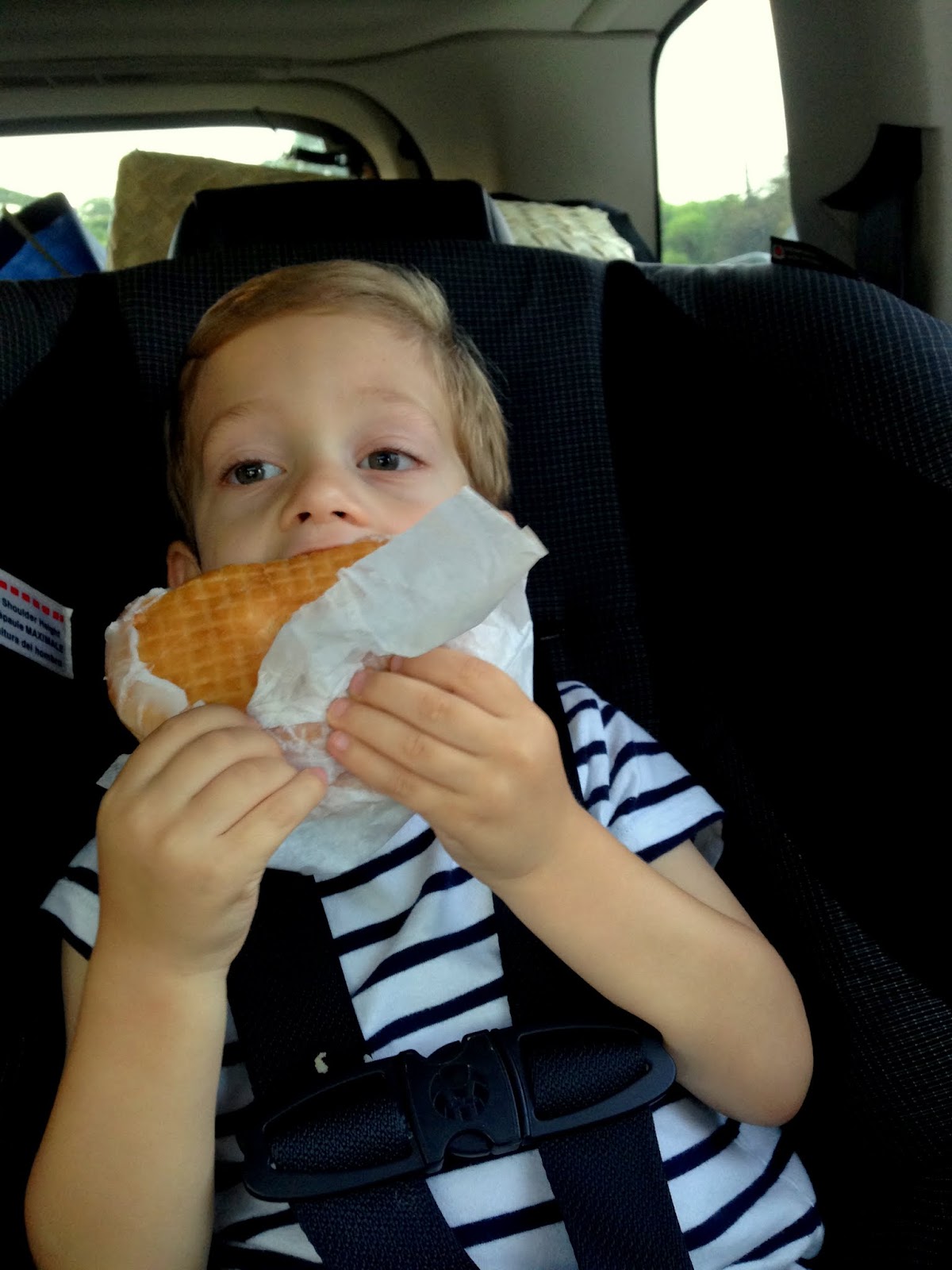 But, before we start, I have made it through a few long haul flights with kids with no one getting arrested. So I am an expert and here are some tidbits I have learned. A big one is I always select our seats in advance and I make sure we are sitting two together and then two behind. This means that when Malcolm is kicking someone seats or putting the tray up and down a million times it’s a family member’s seat and not some cranky traveler who might not see his cuteness. I also bring ALOT of snacks. However many snacks I think I need, I double it and pack that. I pack a lot of edible treats, this time that included chocolate eggs with a spiderman inside, a ton of gummy bunnies (I use the gummies for when we’re taking off and landing- thanks mom for sending!) and the old standby for when things get really hairy- a candy necklace. I also pack a few new toy treats. This time it was a couple of these: Toob toys/ I was confused about these but Malcolm’s teachers told me he LOVED them and it’s true. Malcolm is still clutching his.