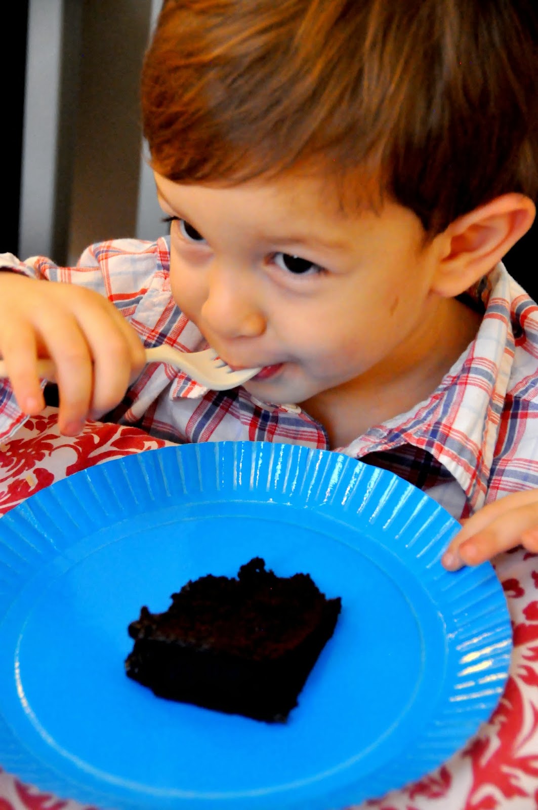 But as much as he loved this chocolate cake, when I asked he still gave me a bite 🙂 Such a sweetie.