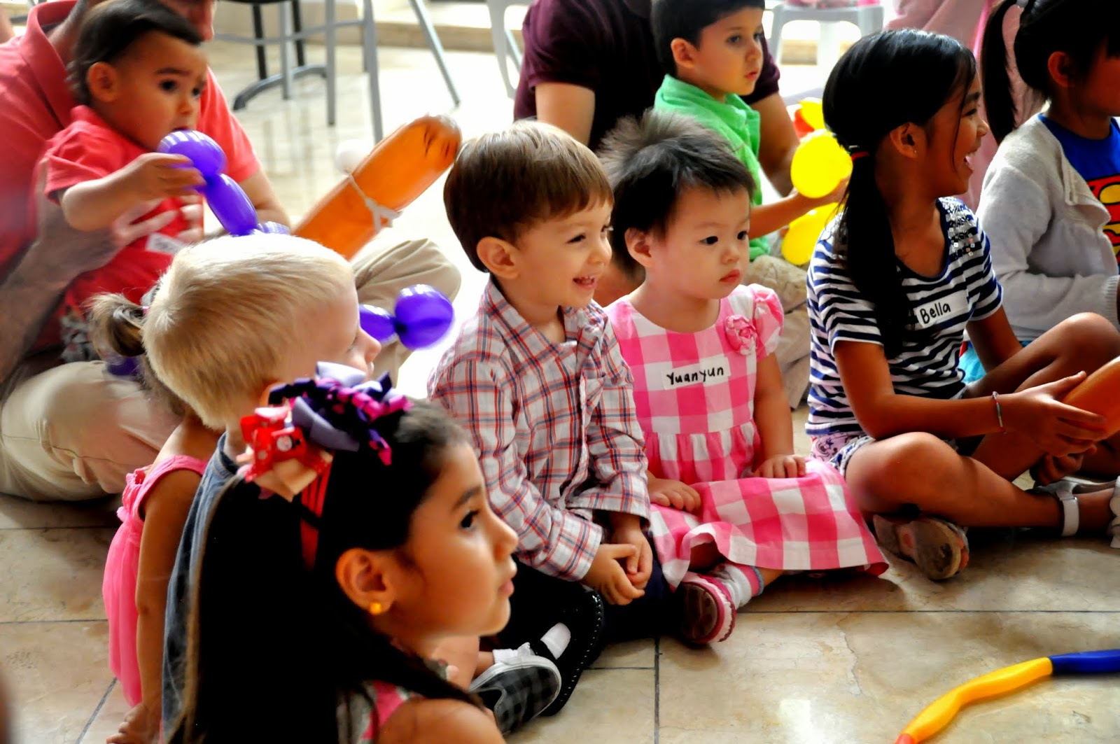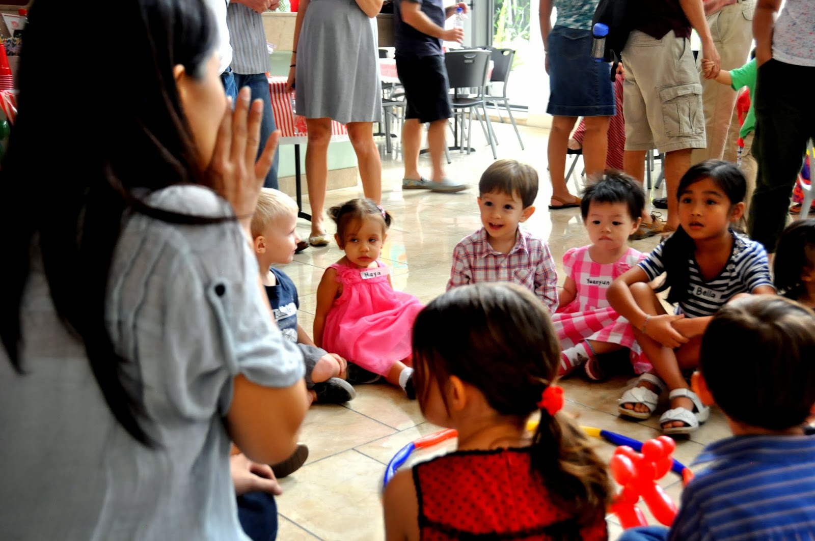 Then Adam went off to play with his friends. It was like he knew it was his party. He got right into everything, hugging his frends hello, coloring, singing and dancing. We had two ladies from a local daycare come and sing songs and the kids LOVED IT!