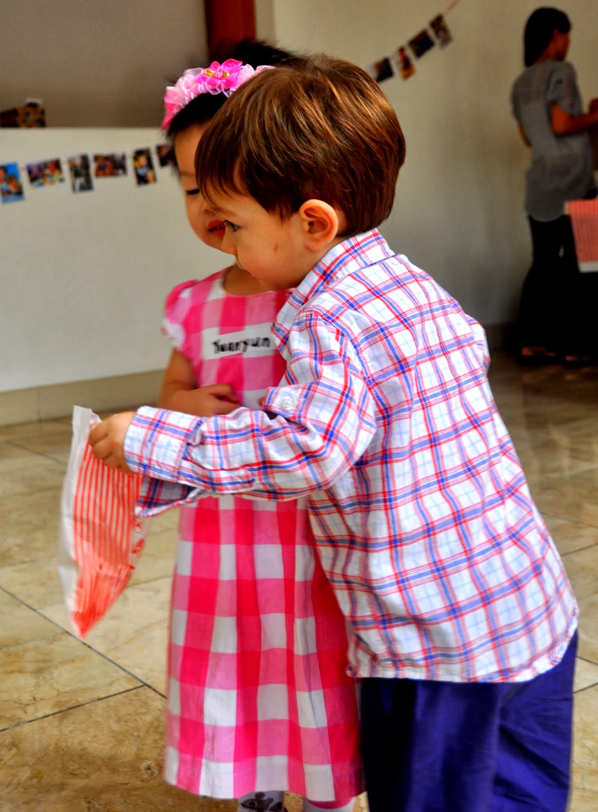 We had the party downstairs in our buidling (25 kids in our apartment just seemed crazy) and because we’re in the Philippines the nicest guy from housekeeping helped me make a big top out of crepe paper and even seemed to enjoy making it.
