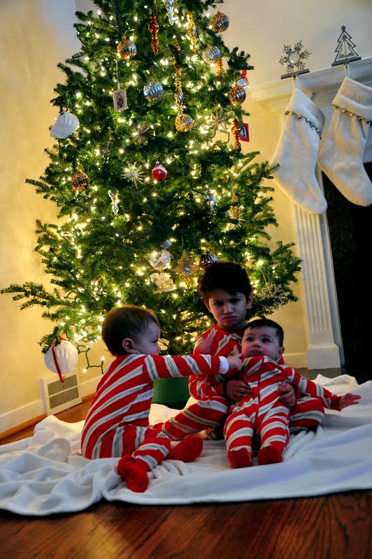Sandra had gotten all three cousins matching pjs so we attempted to take a picture with all three in front of the tree after opening all the gifts. Attempted being the key word.
